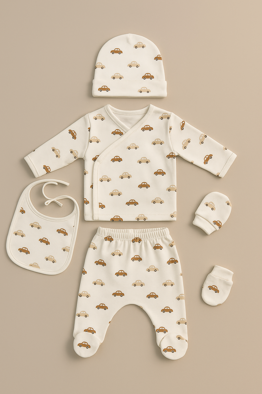 Yeni doğan bebekler için özel olarak tasarlanmış bu baskılı set, %100 pamuklu yumuşak kumaşıyla konfor sağlar. Stoktan hızlı temin edilir, markanıza özel ense baskısı ve yıkama talimatı etiketiyle kişiselleştirilebilir. Minimum sipariş adediyle kolayca sipariş verebilir, markanıza profesyonel bir başlangıç yapabilirsiniz.