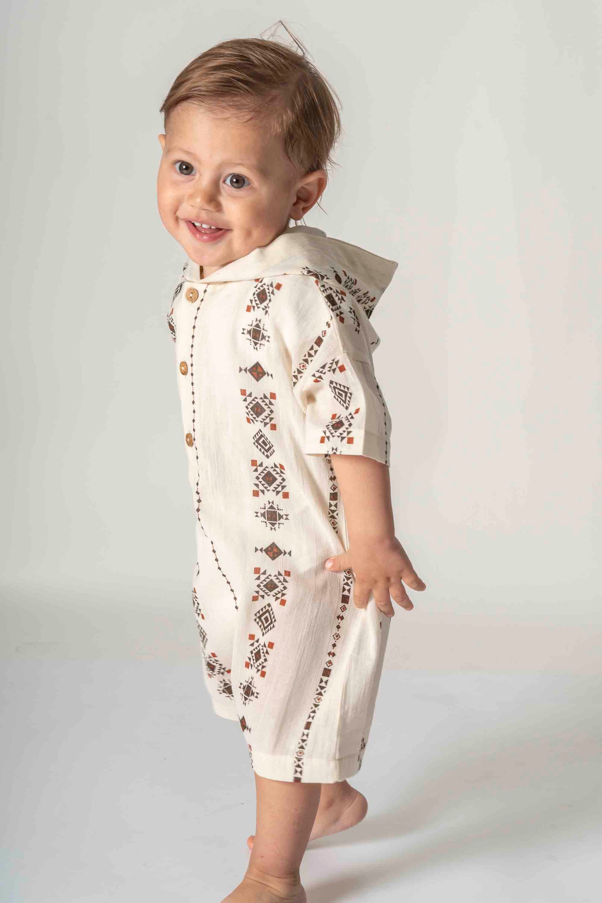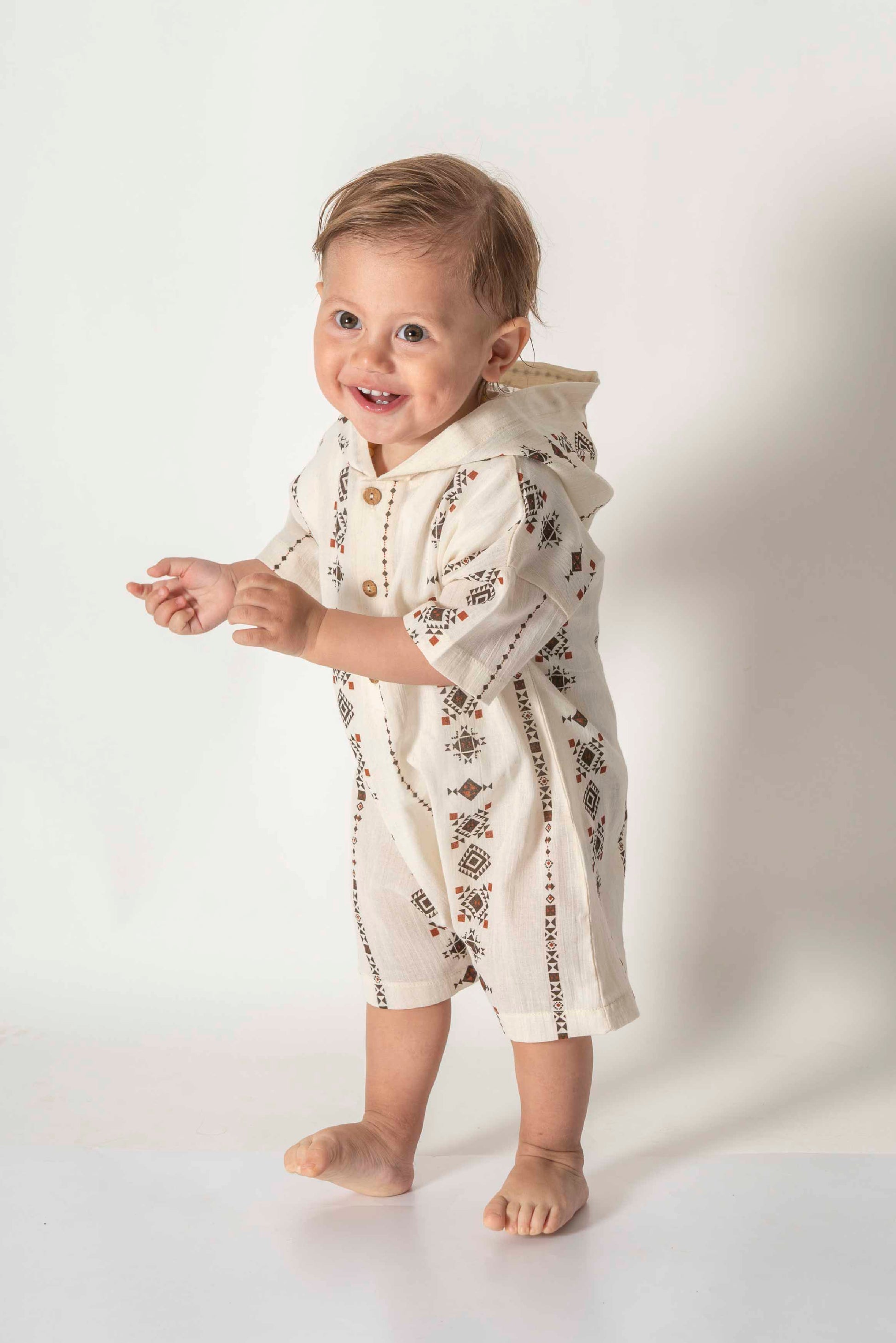 Bebeğinizin gün boyu rahat etmesi için üretilen ORGANİK Yazlık Kahve Kapüşonlu Şort Tulum, yumuşak dokulu ve tamamen organik pamuk kumaşı ile güvenli kullanım sunar. Kimyasal, sentetik katkı veya sert işlem içermez; bu özelliği sayesinde özellikle hassas ciltli bebekler için idealdir.