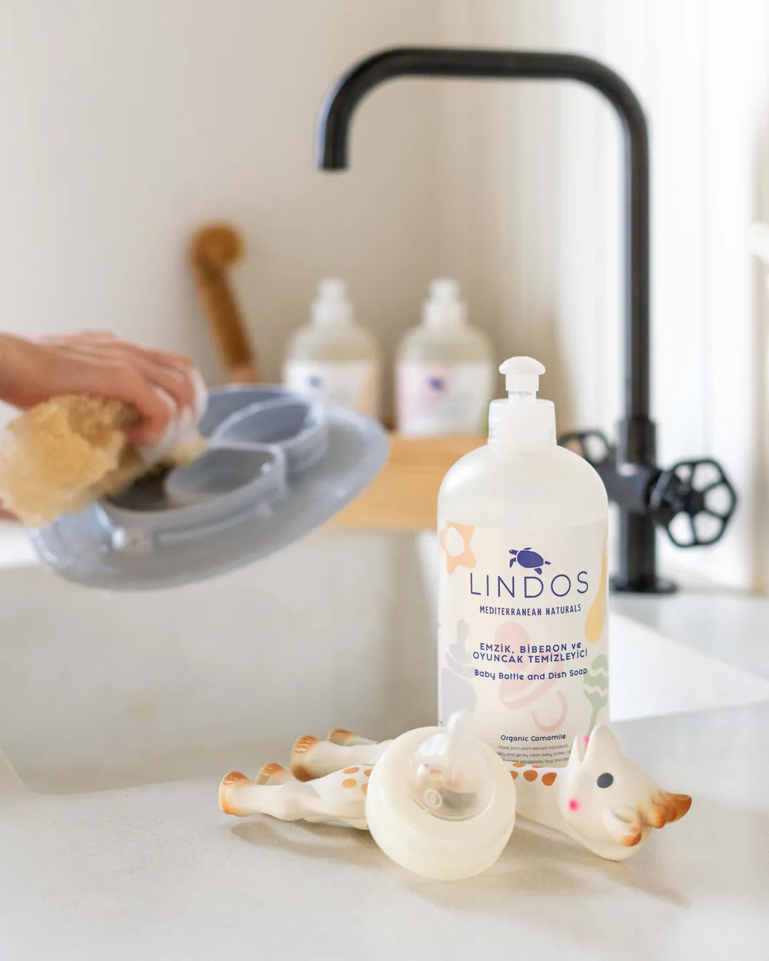 - Daha etkili bir temizlik deneyimi için, erişilmesi zor kalıntıları çıkarmak üzere Lindos Ahşap Biberon Fırçası kullanabilirsiniz.