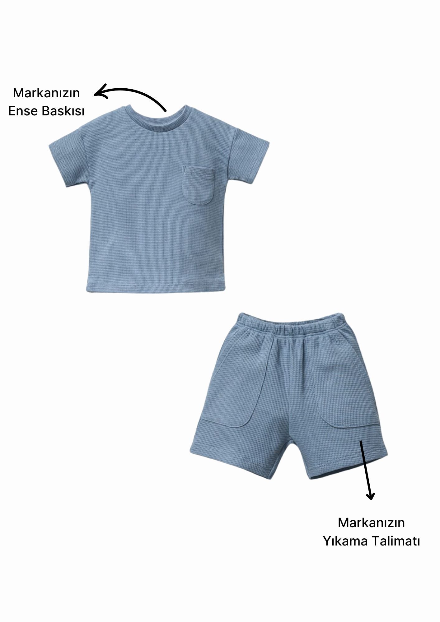 Ürün, markanıza özel etiketleme alanları ile satışa sunulmaktadır. Yıkama talimatı etiketi ve ense baskısı markanızın logosuyla özelleştirilebilir. Ayrıca talep doğrultusunda marka logolu etiket ürün üzerine dikilebilir (Ücretli).