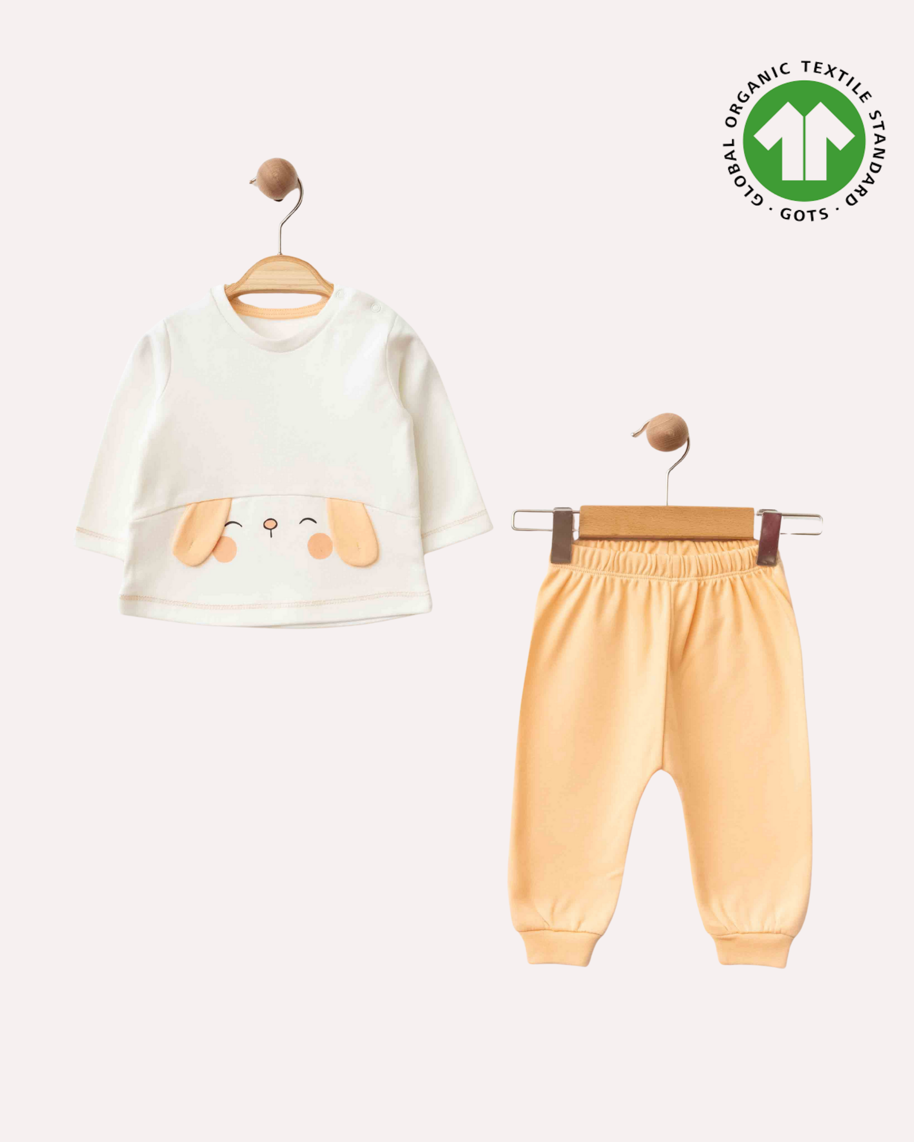 Bebeğinizin gün boyu rahat etmesi için üretilen ORGANİK Tavşanlı Kapüşonlu 2'li Takım, yumuşak dokulu ve tamamen organik pamuk kumaşı ile güvenli kullanım sunar. Kimyasal, sentetik katkı veya sert işlem içermez; bu özelliği sayesinde özellikle hassas ciltli bebekler için idealdir.
