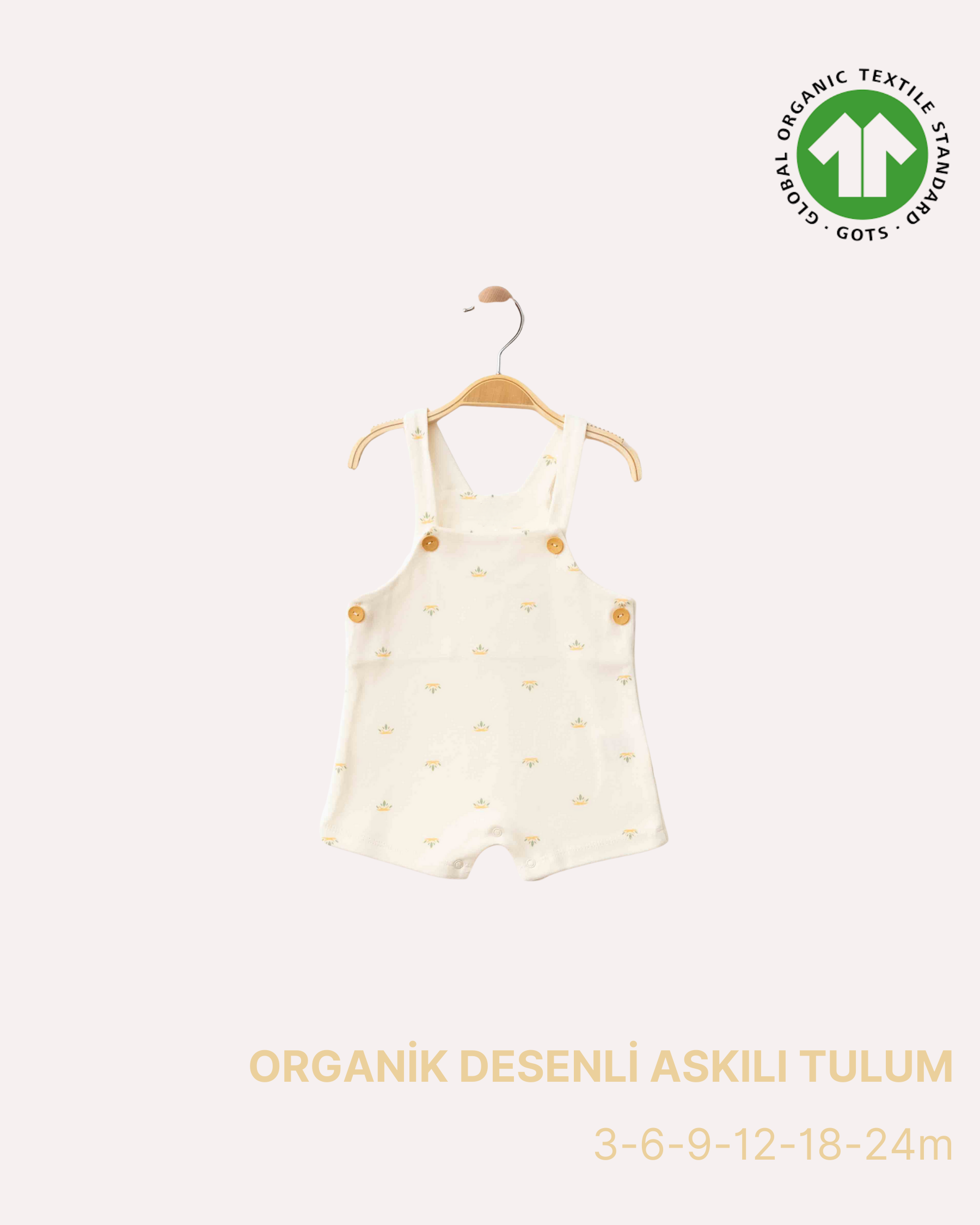 Bebeğinizin gün boyu rahat etmesi için üretilen ORGANİK Desenli Askılı Tulum, yumuşak dokulu ve tamamen organik pamuk kumaşı ile güvenli kullanım sunar. Kimyasal, sentetik katkı veya sert işlem içermez; bu özelliği sayesinde özellikle hassas ciltli bebekler için idealdir.